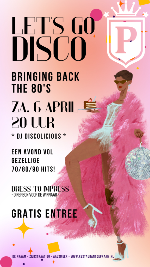 In samenwerking met DJ Discolicious presenteren wij de leukste en gezelligste 80’s party van Aalsmeer en omstreken!